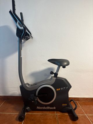 Bicicleta estática NordicTrack GX 2.7 U En muy buen estado, funciona perfectamente. Cómoda y silenciosa, con asiento ajustable, resistencia magnética y pantalla con datos de entrenamiento (tiempo, distancia, velocidad, calorías). Medidas aprox.: 114 cm de largo × 55 cm de ancho × 148 cm de alto Ideal para entrenar en casa