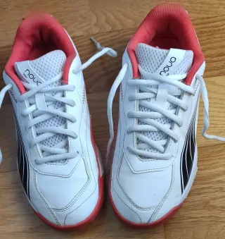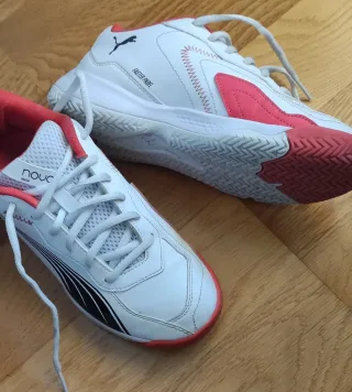 Zapatillas Puma niña pádel blancas y rojas talla 3