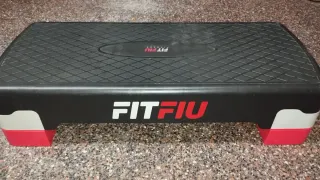 Plataforma de step para ejercicios de gimnasia y fitness. - Superficie antideslizante con patrón de rombos. - Diseño en color negro con detalles en rojo y gris en las bases. - Dos alturas posibles para hacer el ejercicio Sin apenas uso. La vendo por no usarla