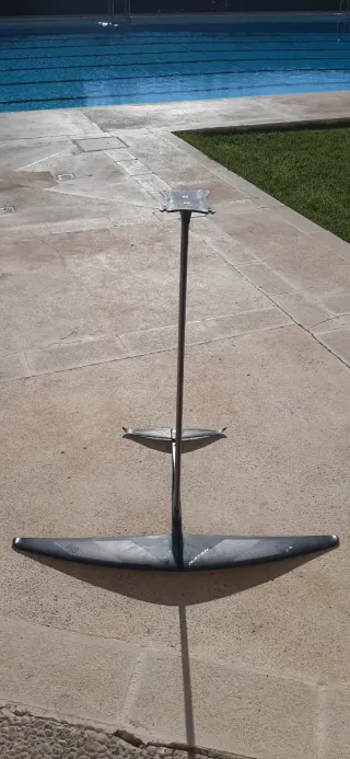 - Mástil S27 de aluminio de 85cm con plate. - Ala delantera jet HA 840cm² S28. - estabilizador M2 de 170cm². Posibilidad de cambiarlo por el 2D de 160cm² que también tengo a la venta en mi perfil. - Fuselaje S27 aluminio de 55cm (corto). Usado y con algún arañazo que no afecta a su rendimiento. Es facilisimo de despegar, con una sustentación y velocidad increíbles y muy ágil y maniobrable en olas y downwind. Posibilidad de hacer un pack con tabla y vela que tengo en mi perfil