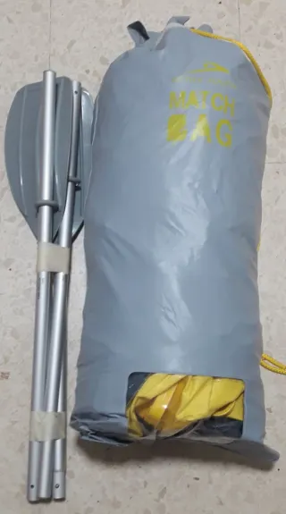 Barco hinchable de color gris y amarillo, ideal para disfrutar del agua. Incluye remos y una bolsa de transporte. - Barco hinchable de color gris y amarillo. - Remos plateados desmontables. - Bolsa de transporte gris con logo MATCH BAG. A RECOGER EN ALICANTE CAPITAL TENGO MAS COSAS EN MI PERFIL