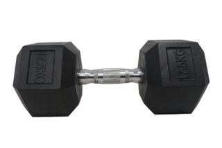 Mancuerna hexagonal de 17.5 kg, ideal para entrenamientos. - Diseño hexagonal que evita que ruede. - Empuñadura metálica texturizada para un mejor agarre. Mas material de fitness en el perfil.