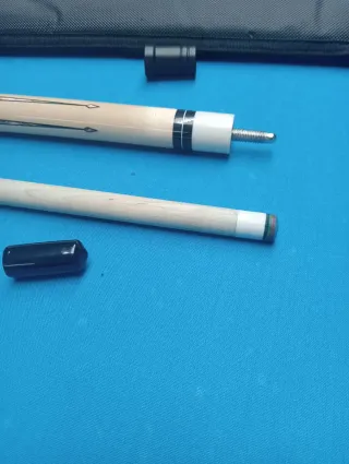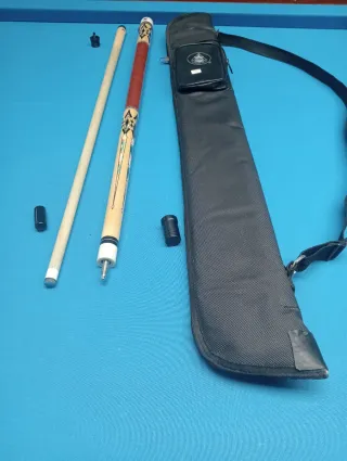 Se vende taco de billar Adam. - Taco de billar de dos piezas. - Incluye funda para transporte. - Incluye protectores para las juntas. Peso560gr. Flecha de 13 m.m largo montado 1.48
