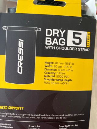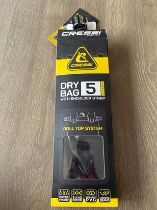 Bolsa estanca Cressi de 5 litros con sistema de cierre enrollable y correa. - Capacidad: 5 litros - Cierre: Roll Top System - Incluye: Correa para el hombro - Material: PVC duradero - Sellado: Hermético - Protección: Agua y arena