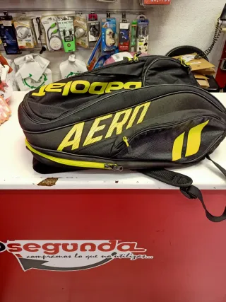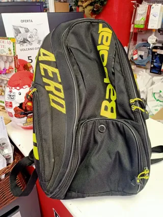 Mochila deportiva Babolat Aero en color negro con detalles en amarillo. - Diseño moderno y funcional. - Logo de la marca visible. - Cremalleras de alta calidad.