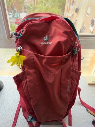 Mochila Deuter Futura 22L en color coral, ideal para senderismo y actividades al aire libre. Cuenta con un diseño práctico y cómodo. - Capacidad de 22 litros. - Compartimento principal espacioso. - Bolsillos laterales. - Cierre con cremallera. - Tirantes ajustables.