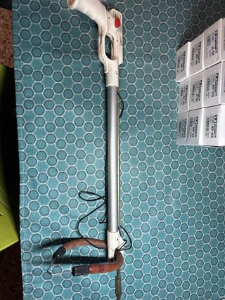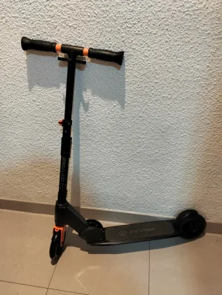 Patinete eléctrico infantil con un diseño moderno y llamativo. - Manillar negro con puños ergonómicos. - Plataforma negra con detalles en rojo. - Ruedas negras. - Freno en el manillar. Para niños de 5 a 12 años. No envío. Abierto y nunca usado mi hijo tiene miedo