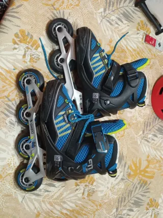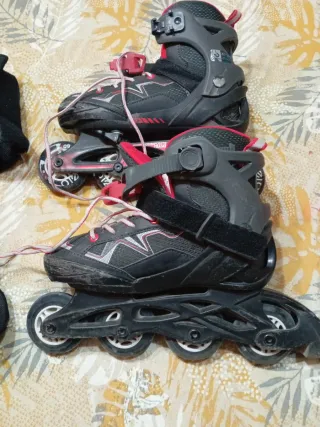 Lote patines línea no son los normales son buenos ligeros talla 35/38 +bolsa cabe todo+protectores S+calcetines. foto para ver estado (plástico freno un pequeño rasguño y un pelado pequeño en protectores de manos)