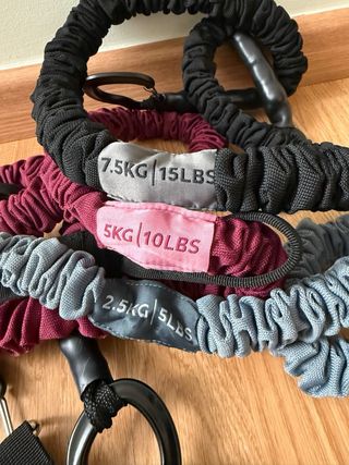 ¡Entrena todo el cuerpo en casa con este versátil kit de bandas elásticas! Perfecto para tonificación, fitness, pilates y rehabilitación. Marca Nyamba de Decathlon. Este kit compacto permite realizar una gran variedad de ejercicios para fortalecer y tonificar. Las bandas elásticas ofrecen resistencia para adaptarse a diferentes niveles de intensidad. Portátil, ideal para entrenar en casa, de viaje o al aire libre. Versátil, adecuado para múltiples disciplinas deportivas y objetivos de fitness. Permite ajustar la resistencia combinando las diferentes bandas. Incluye asas de agarre, correas para tobillos y anclaje de puerta