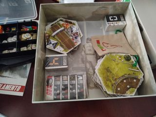 Juego de Mesa Anachrony + Expansión de Comandantes de Exotrajes incluida dentro del juego base todo organizado en inserto Folded Space + Tapete de neopreno original + Recursos Deluxe, es la edición en inglés, francés y alemán pero es totalmente independiente del idioma, incluyo manual impreso a color y encuadernado hecho en copistería. Todas las cartas enfundadas. Nuevo a estrenar, solo abierto para organizar pero nunca jugado.