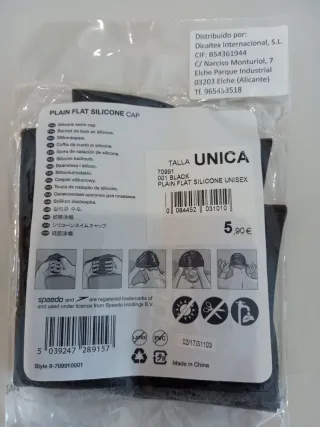 Gorro de silicona natación Speedo, modelo Plain Flat Silicone Cap. - Color negro. - Material de silicona. - Diseño liso y plano.