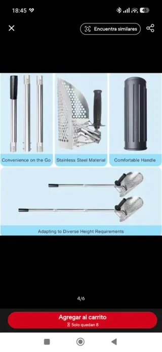 Accesorio para detector de metales, ideal para buscar en la arena o tierra. - Pala de metal con agujeros. - Mango ergonómico. - Incluye extensiones para el mango. Vendo scoop para playa,no sé ha utilizado nunca,está nuevo a estrenar