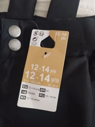 Pantalón esquiar negro, ideal para actividades al aire libre. Talla 120 cm. Niño/niña. Los tirantes son ajustables y están como se ve en última foto dados de sí, y se puedes quitar y poner Ski, esquí, esquiar
