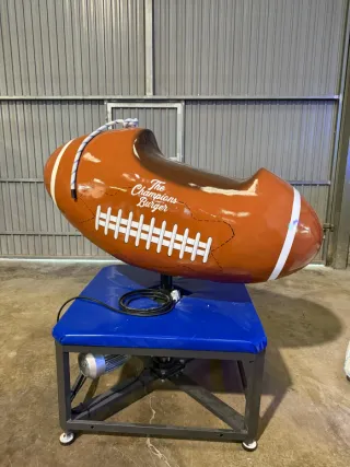 Divertida máquina mecánico con temática de balón de fútbol americano. - Diseño llamativo The Champions Burger. - Base acolchada azul. - Incluye motor.