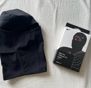 Pasamontañas Nike Thermafit en color negro. Diseñado para mantener la cabeza y el cuello abrigados. - Logo de Nike en blanco. - Tejido Therma-FIT.