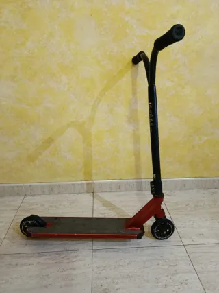 Patinete Oxelo para la práctica de freestyle. Diseñado para maniobras y trucos. - Manillar negro con puños de goma. - Base con diseño gráfico. - Ruedas rojas y horquilla delantera roja.