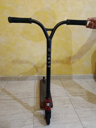 Patinete de la marca Slamm en color rojo. - Plataforma de patinaje. - Manillar negro. - Ruedas negras.