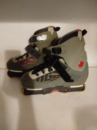 Patines en línea para patinaje. - Color gris y verde. - Cierre de velcro y cordones. - Ruedas de poliuretano.