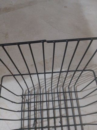 Cesta de hierro para bicicleta, ideal para transportar objetos. - Material: Hierro. - Diseño de rejilla.
