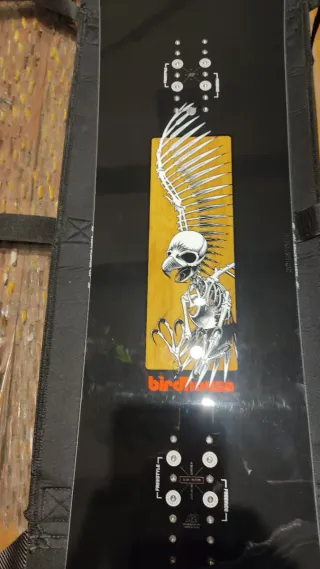 Tabla de snowboard K2 con diseño gráfico de calavera y alas. Tabla k2 edicion limitada 147 - Diseño gráfico de calavera con alas. - Marca K2. - Logo de Birdhouse.