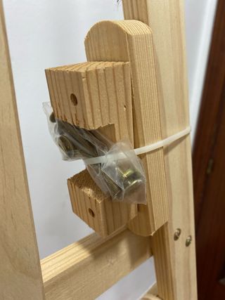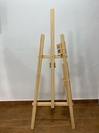 Caballete de madera para exhibir obras de arte o como soporte para pintar. - Material: Madera natural. - Diseño trípode estable. - Altura ajustable.