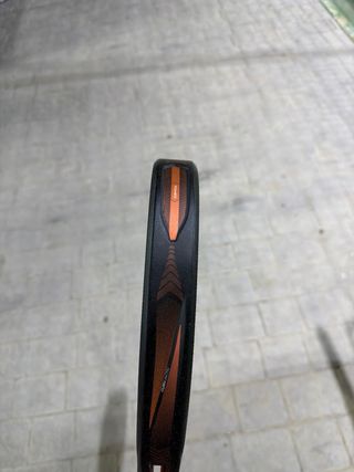 Pala de pádel Head Speed EVO en color blanco y negro. - Diseño moderno. - Marco con tecnología Power Frame. - Goma Soft Foam. - Superficie con Extended Impact Zone. -Utilizada pocos partidos, esta como nueva ningun golpe. -Tiene un refuerzo en el borde de la pala.