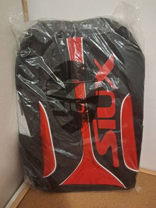 Mochila de pádel con un diseño moderno y deportivo. - Color principal negro con detalles en rojo y blanco. - Compartimento principal espacioso. - Correas ajustables para mayor comodidad.