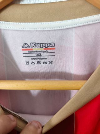 Camiseta de fútbol del CD San Fernando. - Color rojo con detalles en negro. talla 3xl - Logo de Kappa en el pecho. - Escudo del club en la parte frontal. - Inscripción UNION Y FUERZA en el cuello.