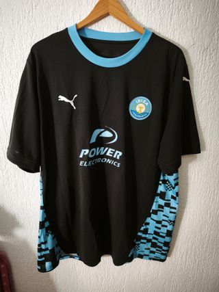 Camiseta de fútbol de la Unión Deportiva Ibiza. - Color negro con detalles en azul. - Logo de Puma bordado. - Escudo del club en el pecho. - Diseño con estampado geométrico en los laterales.