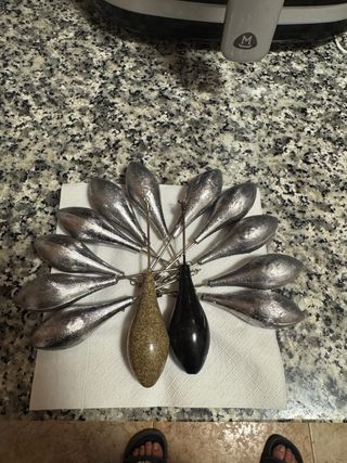 Lotes de plomos de pesca tipo portugues Se hacen en 120 y 130 gramos El precio es por unidad y el pedido mínimo 10 unidades Solo se venden sin pintar