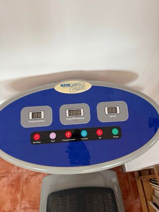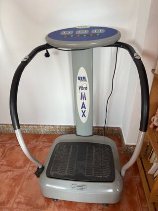 Plataforma vibratoria Gym Form Vibro Max. - Diseño moderno en gris y azul. - Pantalla digital con controles. - Asas de agarre laterales.