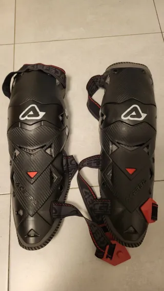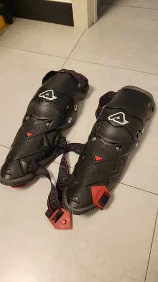 Protecciones para las rodillas y espinillas de la marca Acerbis. Diseñadas para ofrecer seguridad y comodidad. - Color negro con detalles en rojo. - Cierre con correas ajustables. - Material resistente y flexible. Le falta unos de los enganches pero estan nuevas.
