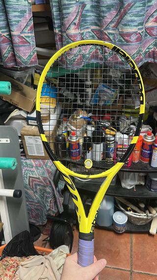 Raqueta de tenis Babolat Pure Aero. - Peso: 300 gramos. - Tamaño de grip: 3. el desperfecto de arriba parece agrietado pero como muestro en las fotos es la pintura saltada y sin grietas