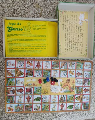 Jogo de tabuleiro clássico Jogo do Ganso da Majora, publicado em 1982. - completo, com caixa, bom estado - Ilustrações de gansos e um percurso temático. - Inclui o texto Competição, azar e surpresa