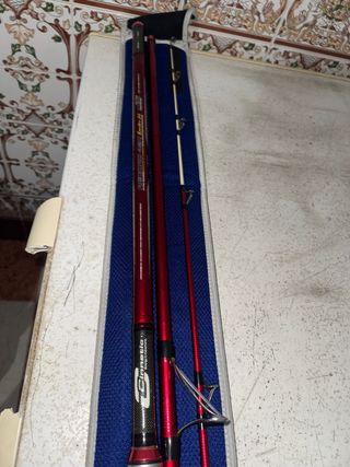 Caña de pesca Cinnetic Récord Booster Jet 420 en color rojo. Se vende o se cambia por caña del mismo valor o pareja que lleguen al mismo valor - Diseño de tres tramos. - Empuñadura con detalles en carbono.