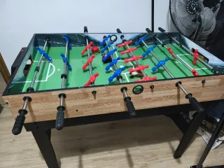 Mesa de futbolín para disfrutar en familia o con amigos. Ideal para pasar ratos de ocio. - Diseño clásico con acabado en madera. - Incluye dos balones. - Jugadores rojos y azules.