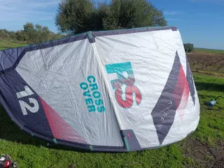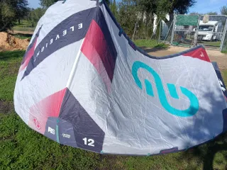 Vendo equipo completo, Cometa de kitesurf ELEVEIGHT RS Crossover de 12 metros del 2022,con no más de 8 o 10 uso, esta casi nueva,con su Barra,incluyo tabla, arnés y regalo el inflador, todo perfecto, se vende por lesión de rodilla y no poder usar - Diseño moderno con colores blanco, rojo, turquesa y azul marino. - Logo de la marca en color turquesa. - Incluye número de modelo '12' y 'RS CROSS OVER'.
