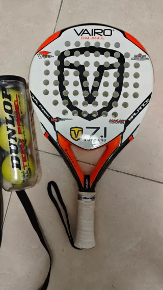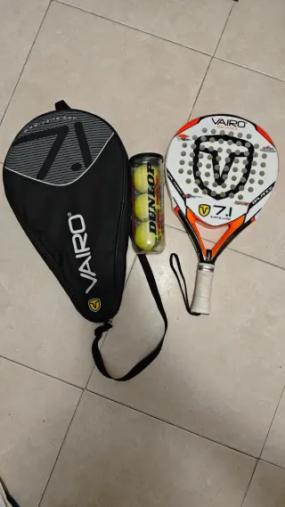 Se vende pala de pádel Vairo con funda y tres pelotas Dunlop. utilizada 3 veces. - Pala de pádel Vairo. - Funda de pala Vairo. - Tres pelotas Dunlop.
