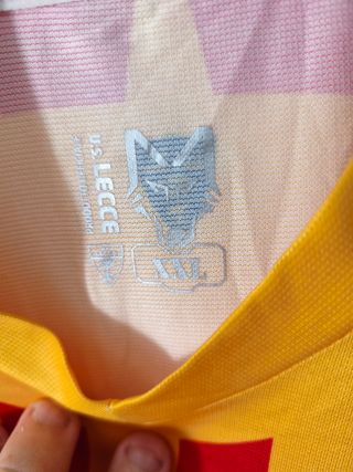 Camiseta de fútbol del US Lecce. - Diseño a rayas rojas y amarillas. - Escudo del equipo en el pecho. talla 2xl