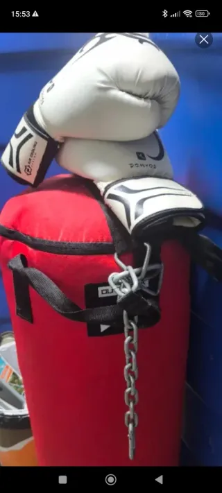 Saco de boxeo blanco con cadenas, incluye guantes