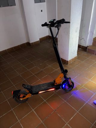 Patinete eléctrico totalmente nuevo por no usar. Lleva dos motores y 6 amortiguadores, luces led laterales... Tiene tan solo 200km. El patinete cuesta en tienda 1000€. - Manillar con sistema de plegado. - Plataforma antideslizante. - Ruedas de goma. - Freno de disco.
