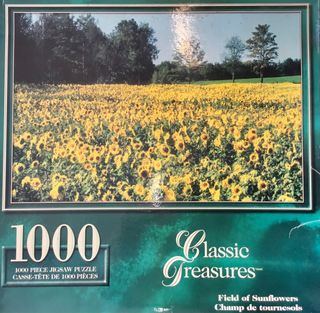 Puzzle de 1000 piezas con una hermosa imagen de un campo de girasoles. - Marca: Classic Treasures. - Título de la imagen: Field of Sunflowers (Campo de girasoles). - Incluye 1000 piezas.