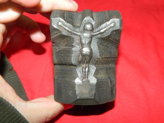 Troquel de acero con la imagen de Cristo crucificado en negativo. Se ve el estado que tiene en las fotos, para sacar cristos crucificados de espaldas. - Material: Acero. - Diseño: Cristo crucificado.