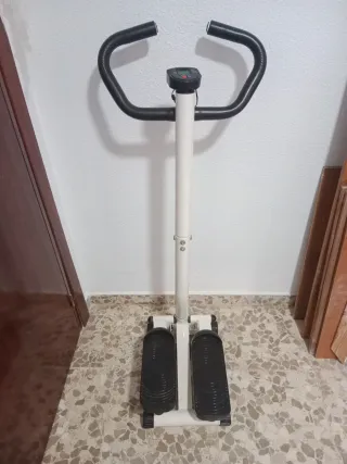 Máquina de escalones para ejercicio en casa. Cuenta con un diseño compacto y funcional. - Manillar con agarres acolchados. - Pantalla digital para seguimiento de ejercicio. - Pedales antideslizantes.