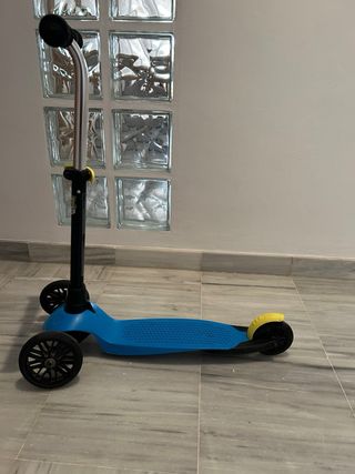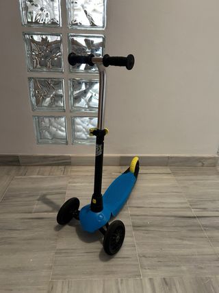 Patinete de tres ruedas en color azul, diseñado para niños. Es un patinete estable y fácil de manejar. - Tres ruedas para mayor estabilidad. - Manillar ajustable en altura. - Plataforma antideslizante. 20 kilos máximo