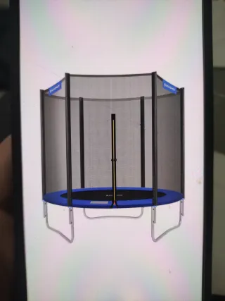 Cama elástica de la marca Songmics, con un diámetro de 2 metros. STR6FT/061P01 - Estructura metálica. - Red de seguridad. - Cubierta protectora. Compramos una carpa y SEUR se equivocó y nos mandó esto. Después de más de cuatro meses reclamando, hemos desistido. Ponemos el precio por el que nos costó la carpa aunque hemos visto que este trampolín en esta marca cuesta más de 300 euros en Alemania.