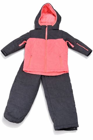 Conjunto de esquí de la marca Mountain para niños de 4 años. Incluye chaqueta y pantalón. - Chaqueta con capucha. - Pantalón de esquí. - Diseño bicolor en gris y rosa.