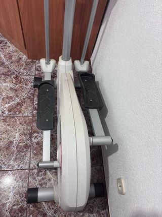 Elíptica Kettler en buen estado, ideal para entrenamientos en casa. - Diseño moderno en color blanco y gris. - Pantalla digital para seguimiento de datos. - Empuñaduras ergonómicas.