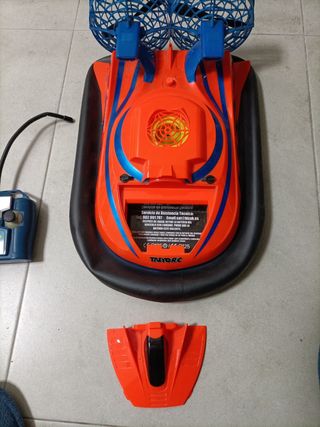 Hovercraft radiocontrol TAIYO RC de color naranja con detalles en azul. Está casi nuevo, pero no aparece la batería. - Diseño aerodinámico. - Dos hélices traseras. - Mando a distancia incluido.