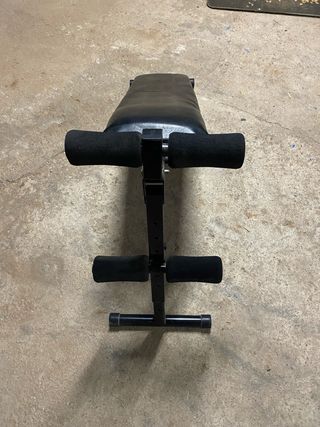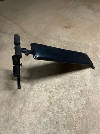 Banco de abdominales con estructura negra y acolchado. - Acolchado para mayor comodidad. - Diseño ajustable para diferentes ejercicios.